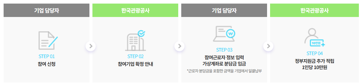 이 사업은 근로자, 기업, 정부가 함께 국내여행비를 적립해서 휴가를 적극적으로 떠나도록 돕는 제도예요.