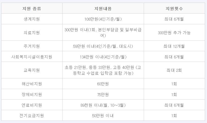 - 지원 항목별 신청 가능: 생계비 외에도 의료, 주거, 교육, 장례비 등 다양한 항목 선택 가능