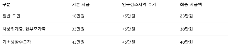 특히 인구감소지역 추가 혜택까지 포함되어 전국에서 손꼽히는 최고 지원 지역입니다.