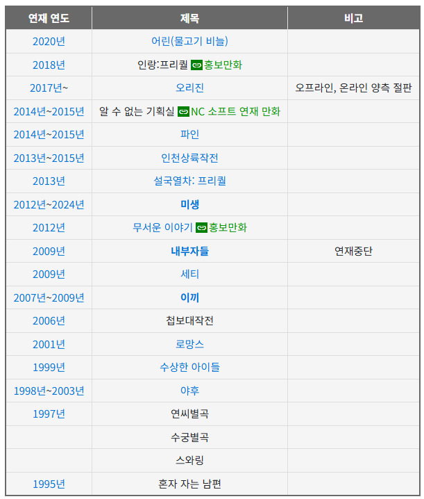 - 연재: 네이버 웹툰