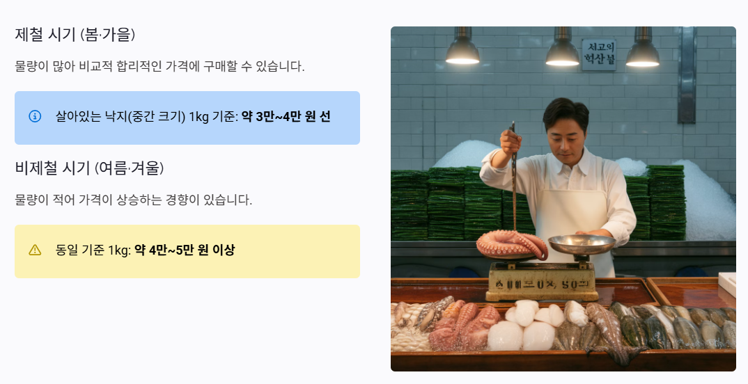 👉 따라서 합리적 가격에 가장 맛있는 낙지를 즐기려면 봄과 가을 제철을 노리는 것이 좋습니다.