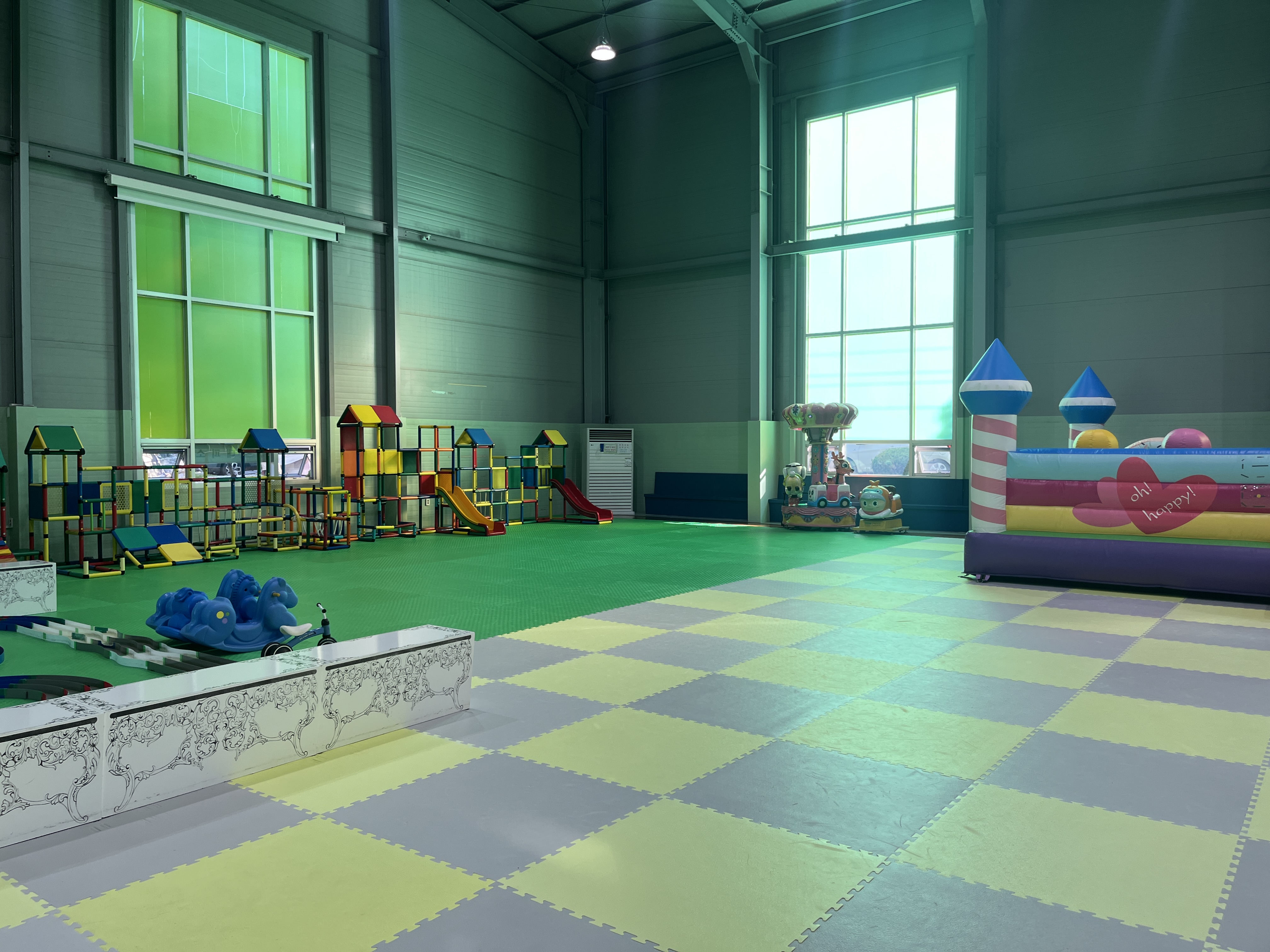 캠핑장 안에는 수영장, 방방이(에어바운스), 키즈카페, 게임장 등이 있어서 아이들이 하루 종일 놀 수 있었어요. 키즈 캠핑장으로는 최대 규모같았고 관리도 꽤 잘되는 캠핑장 같아요. 키즈카페는 보호자 동반시에만 입장이 가능해요. 중간에 청소시간인지 브레이크 타임이 있네요.