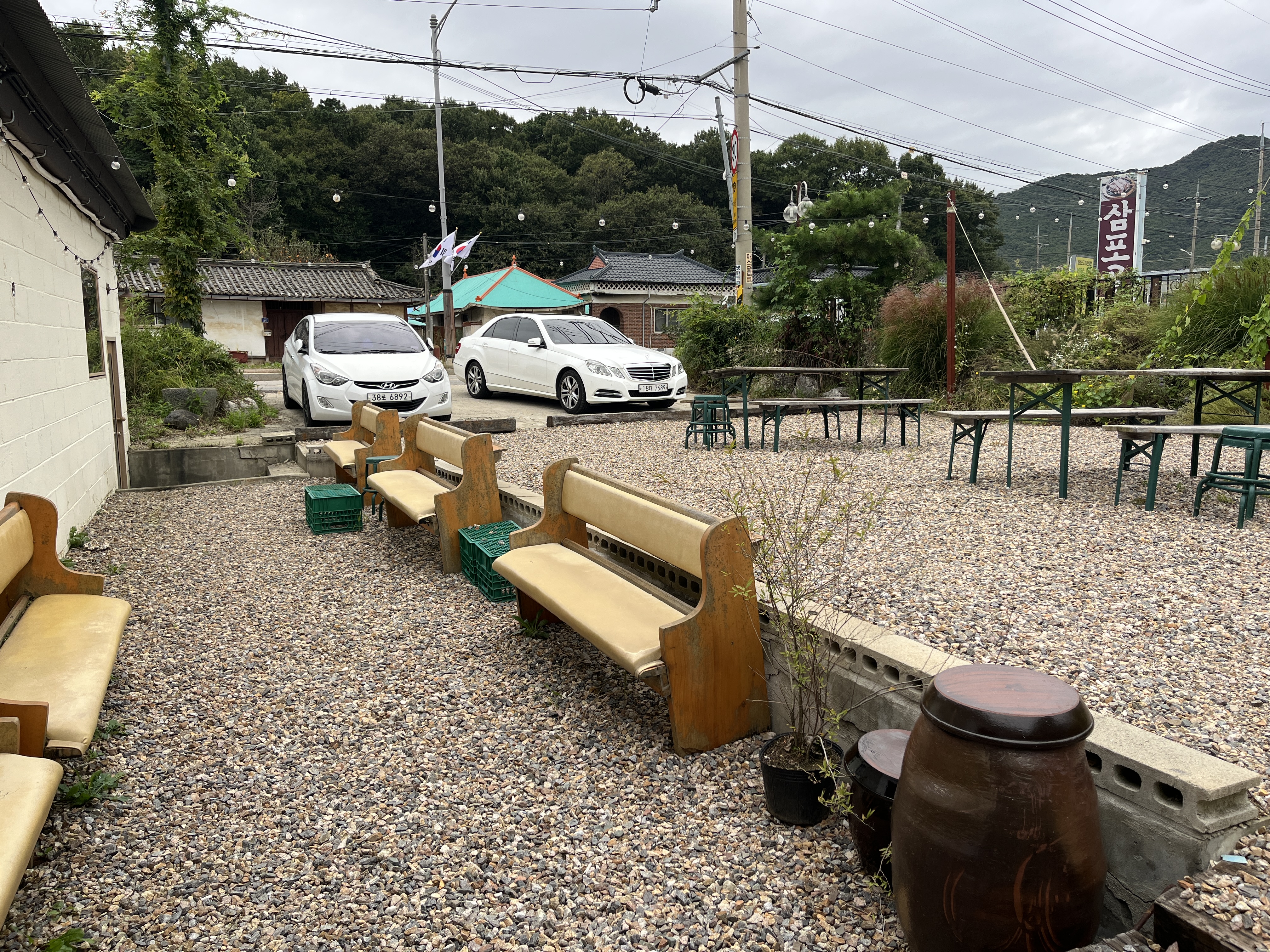 바로 옆에 작은 교회가 하나있었는데 관련되신 분이 카페를 하시는건지 카페 뒤에 외부자리를 살펴보니 교회 장의자가 놓여있었어요 인스타그램을 찾아보니 찬양팀이와서 공연도 하시더라고요