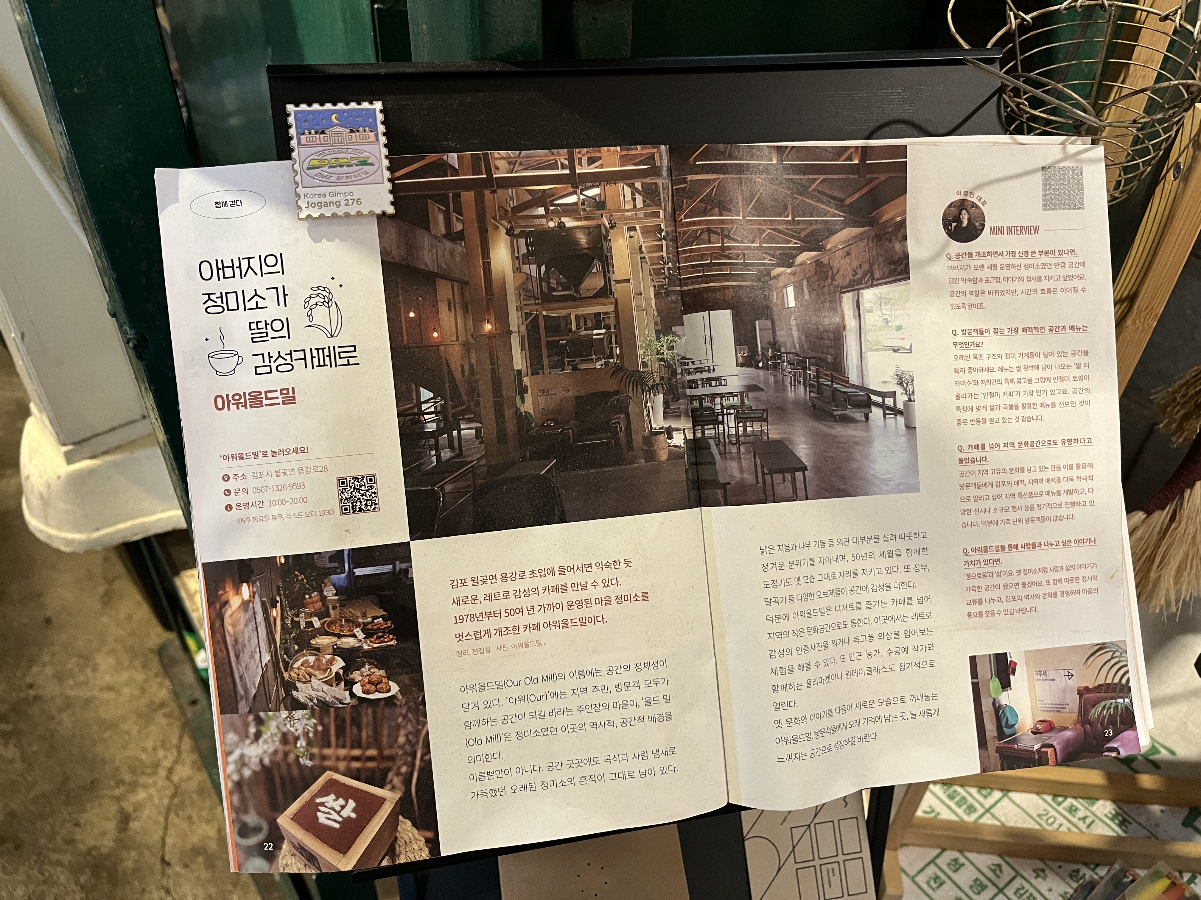 이 카페를 어떻게 창업하게 되었는지 스토리를 인터뷰한 잡지였어요 쌀티라미수와 인절미커피가 인기메뉴라고 해요.