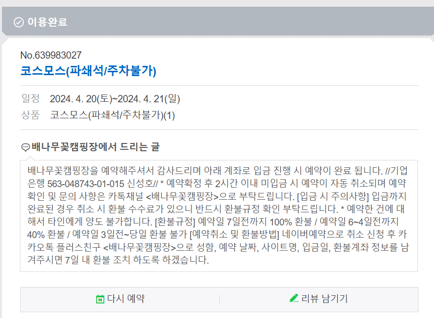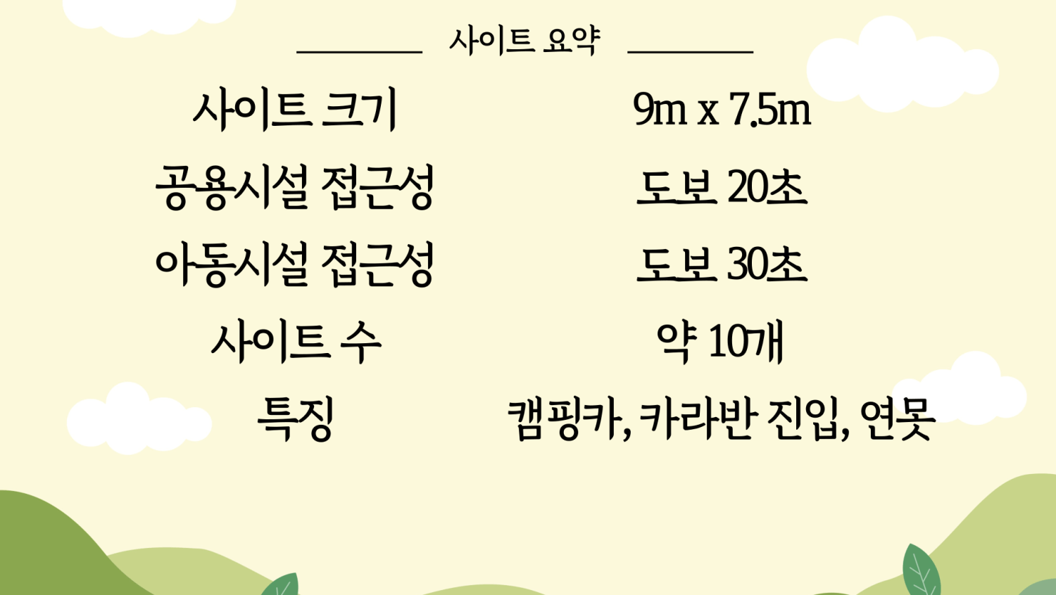 저는 선착순 캠핑장을 별로 좋아하지는 않은데 4인 이상되는 캠핑장을 너무 고르기 어려워서 다른 곳을 찾을 힘이 없었어요.. 선착순이지만 그래도 사이트들이 간격이 넓고 나쁘지 않아서 만족했었네요
